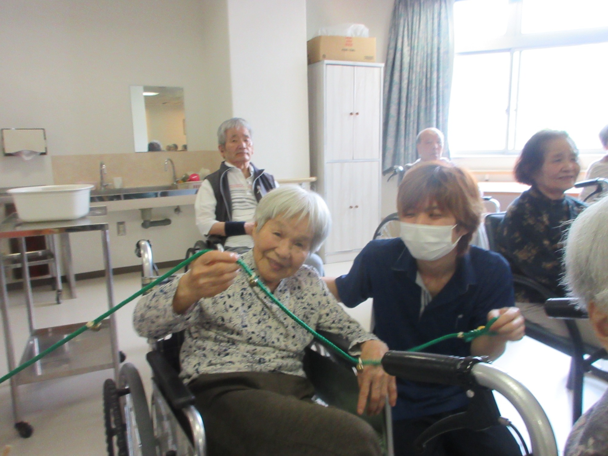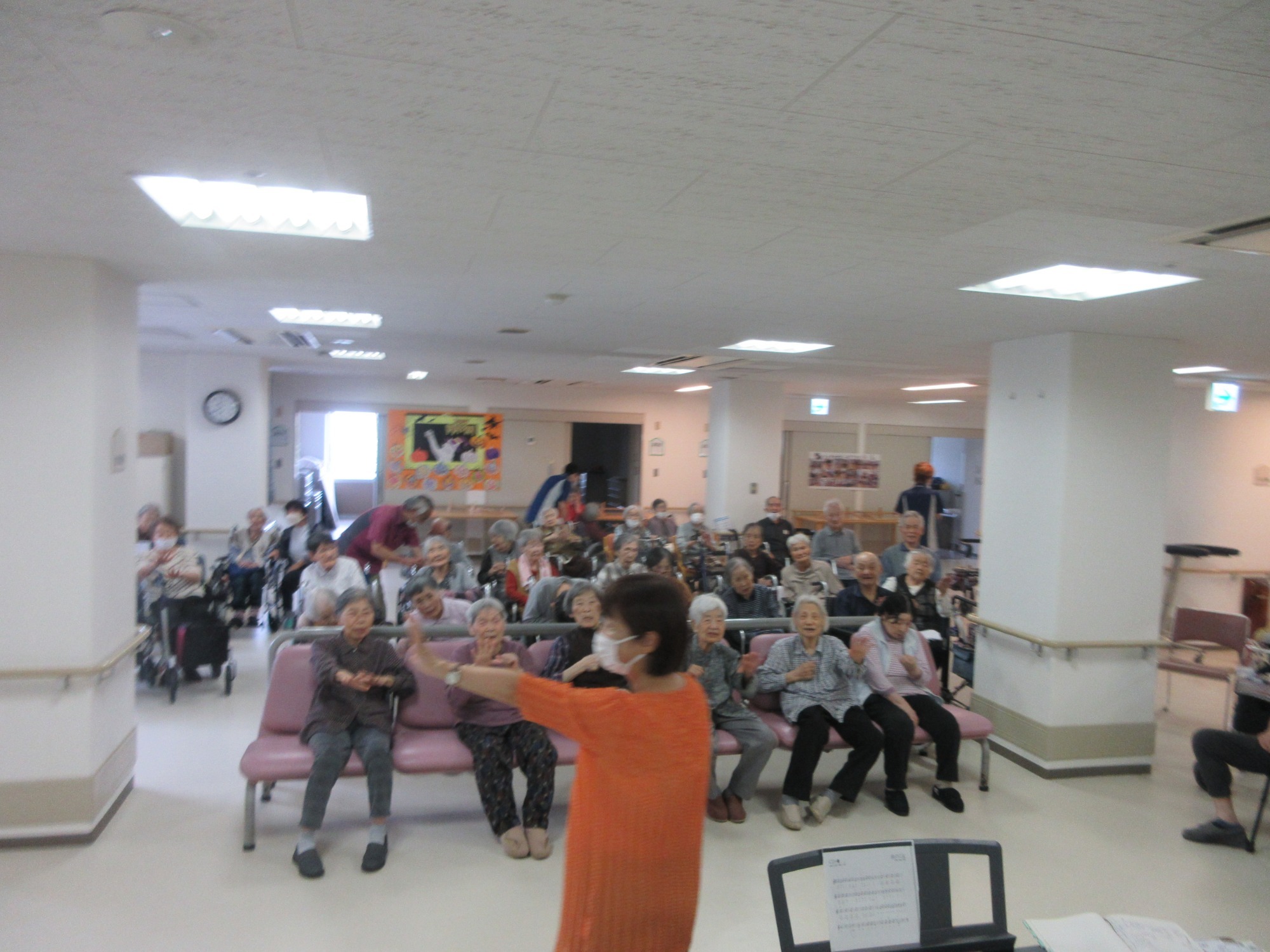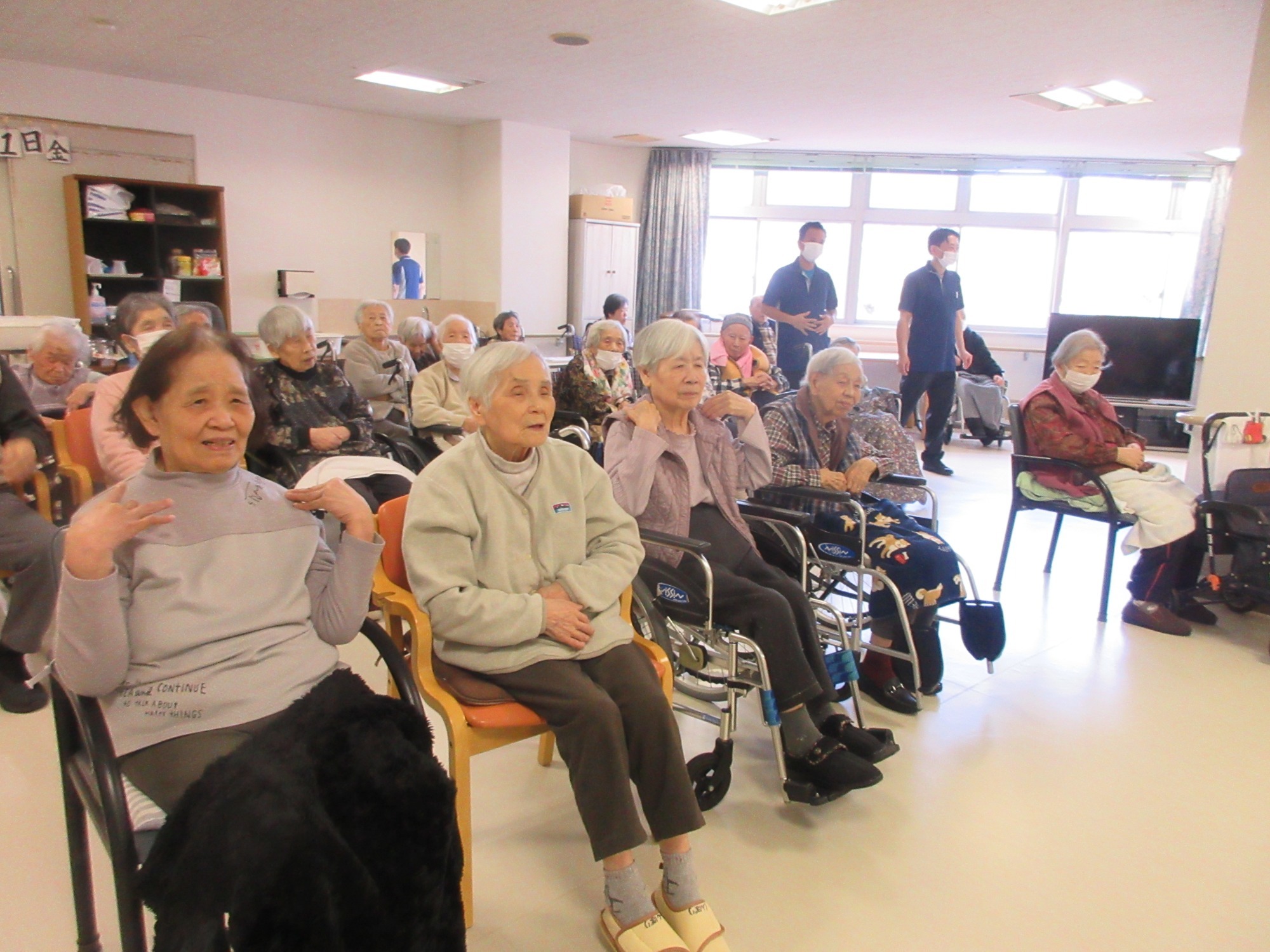 また今月は、溝渕先生の音楽レクにて、懐かしい曲や脳トレゲームなどをして楽しい時間を皆さんと一緒に過ごせる事ができました。皆さんの笑い声と笑顔が沢山見れて良かったです。