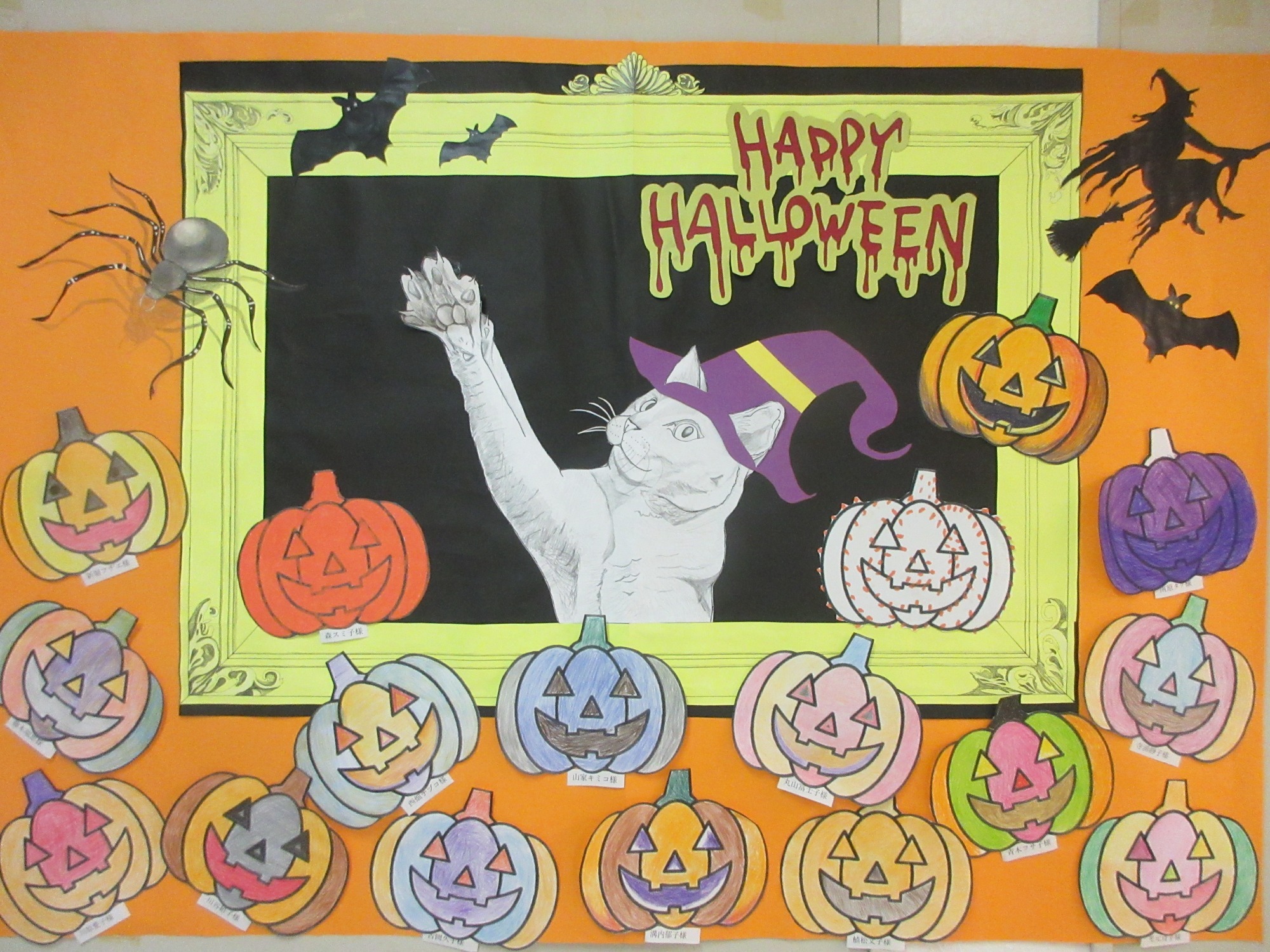 今年の秋の壁画作りは、カボチャのランタン(ジャック・オー・ランタン)の色塗りを皆さんにしていただきました。
