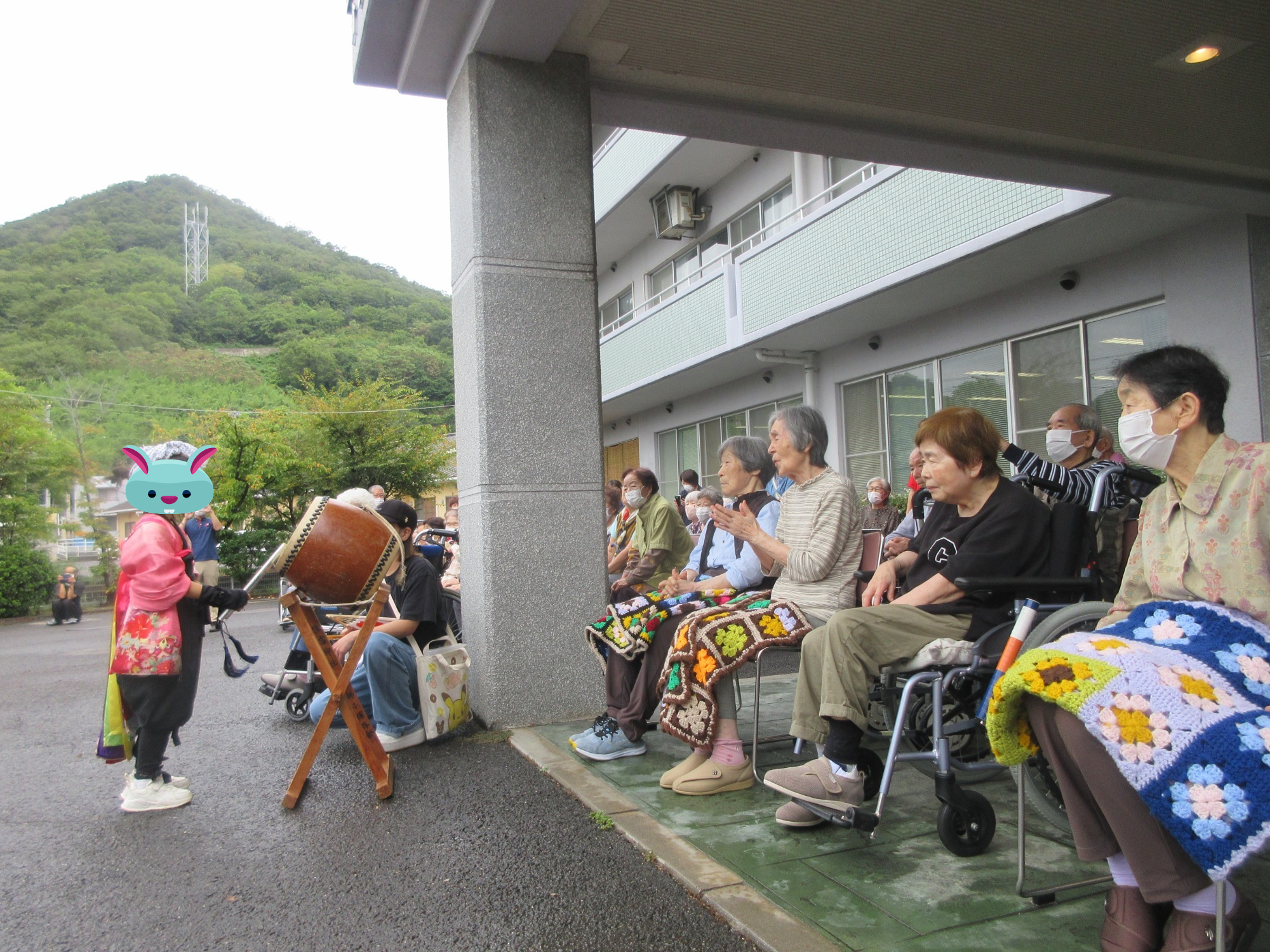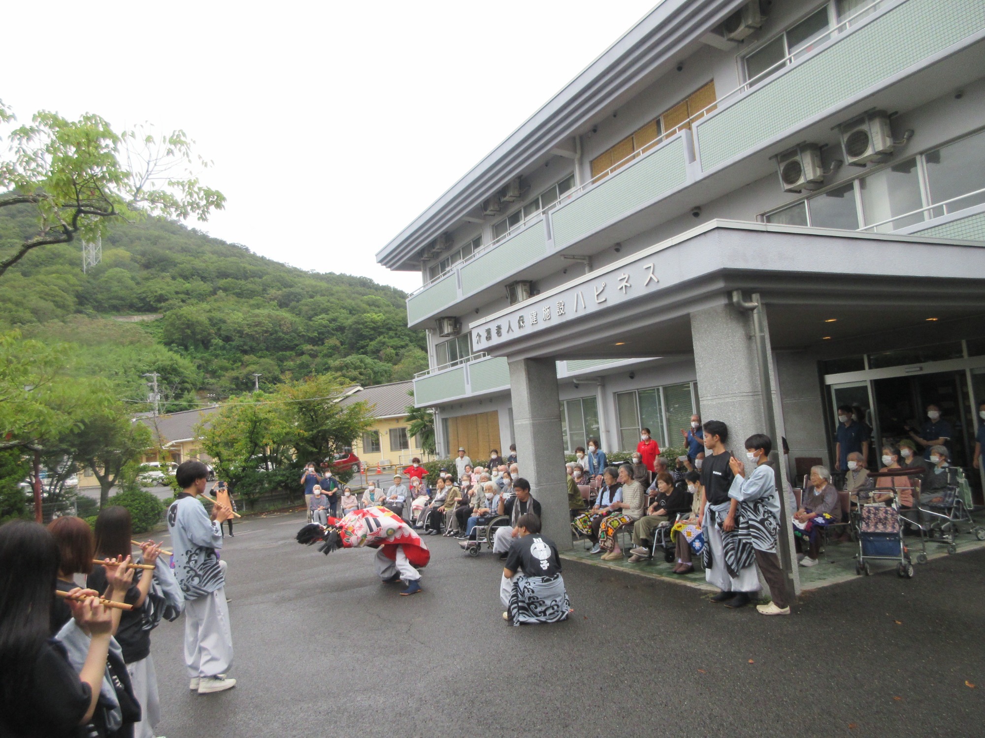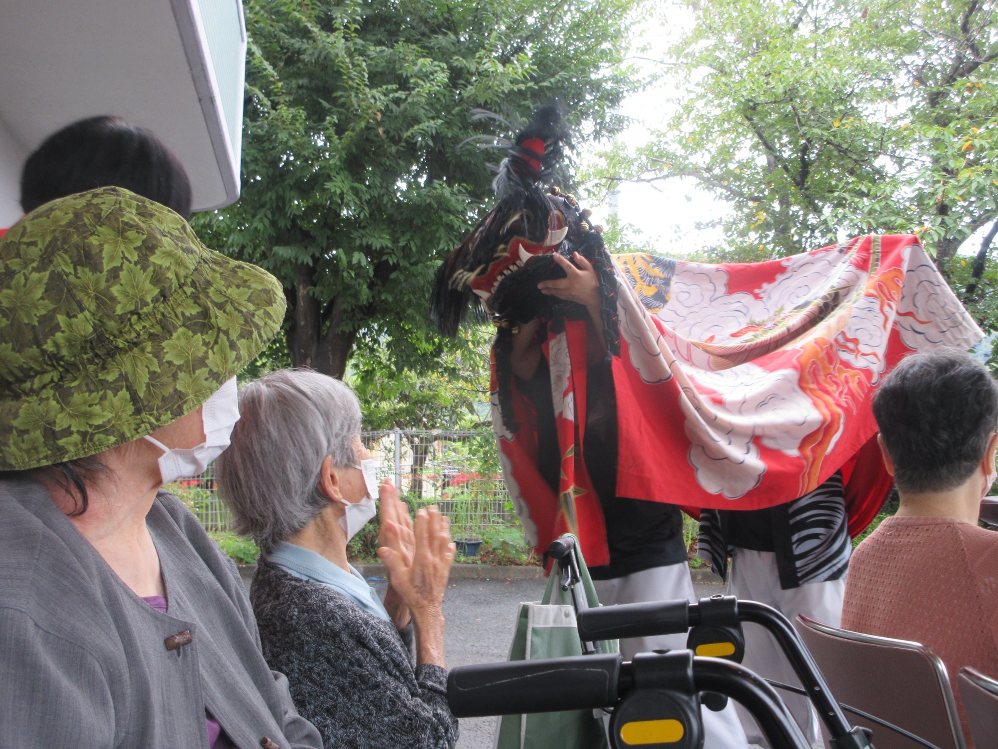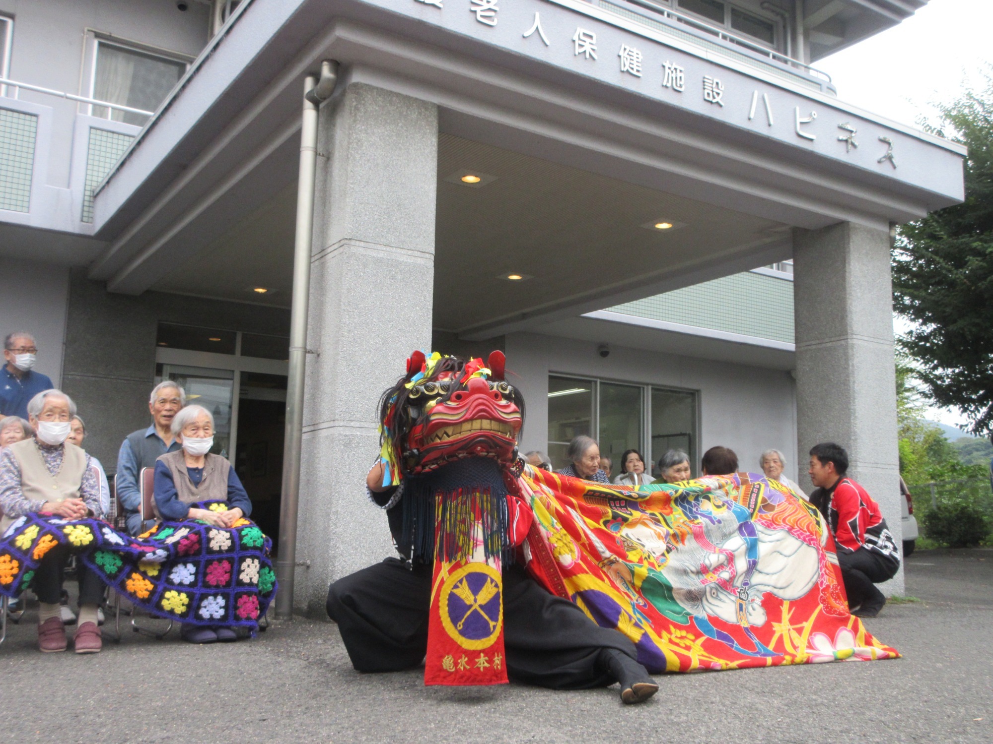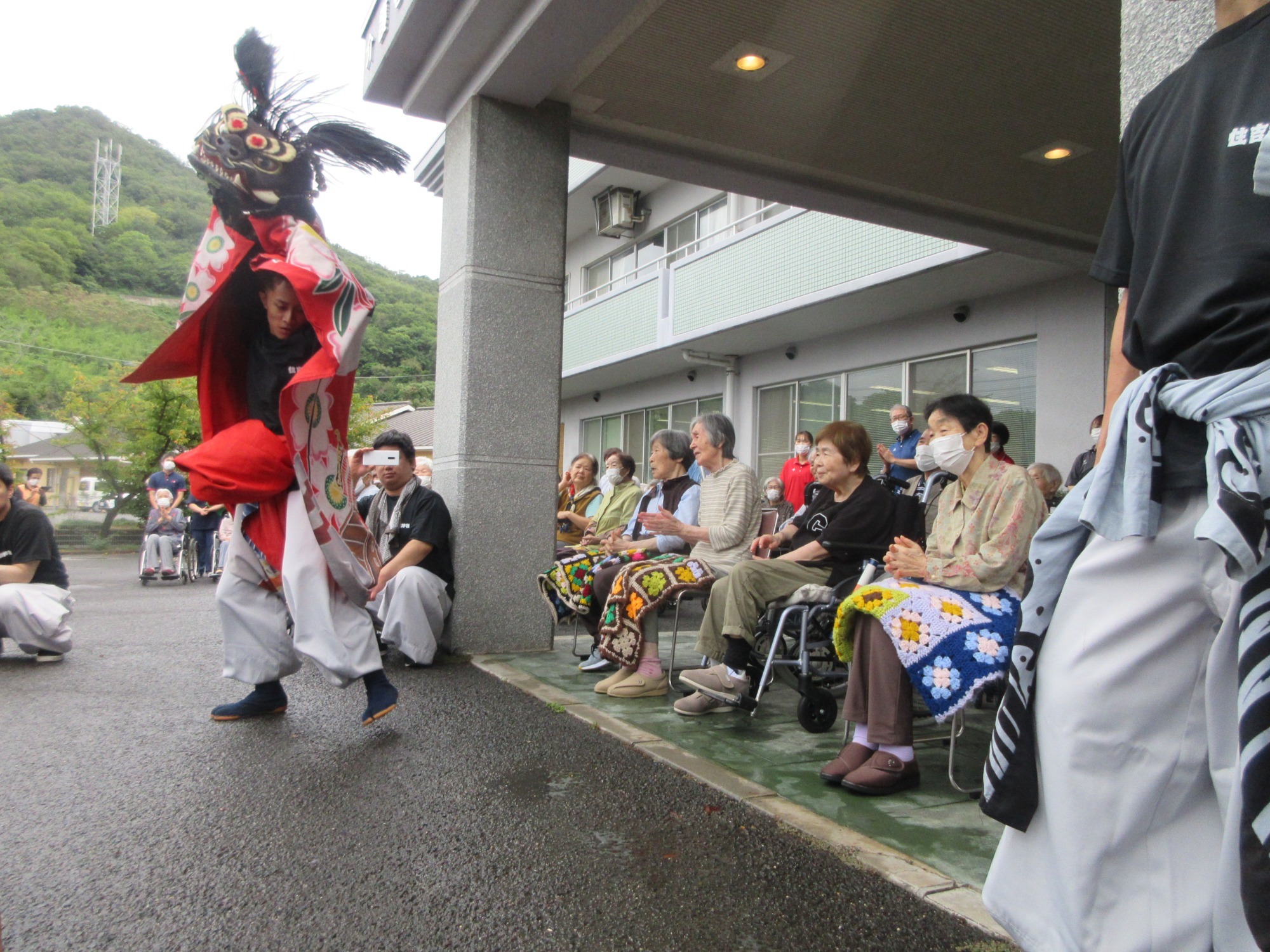 施設の玄関まで獅子が入ってきてくれたり、パワフルな獅子舞を見せてくださいました。神在川窪の皆様、ありがとうございました。