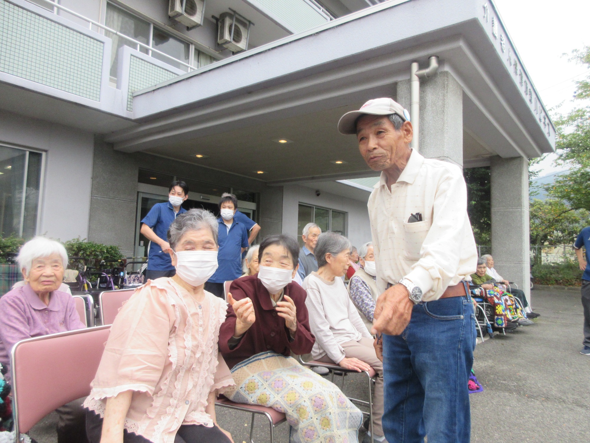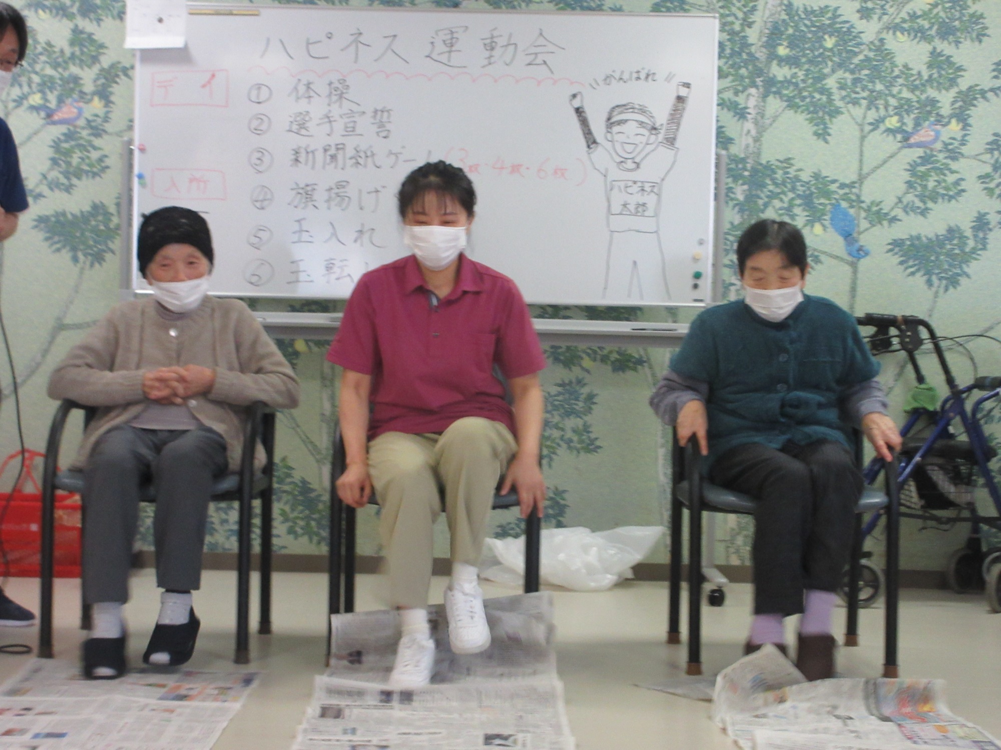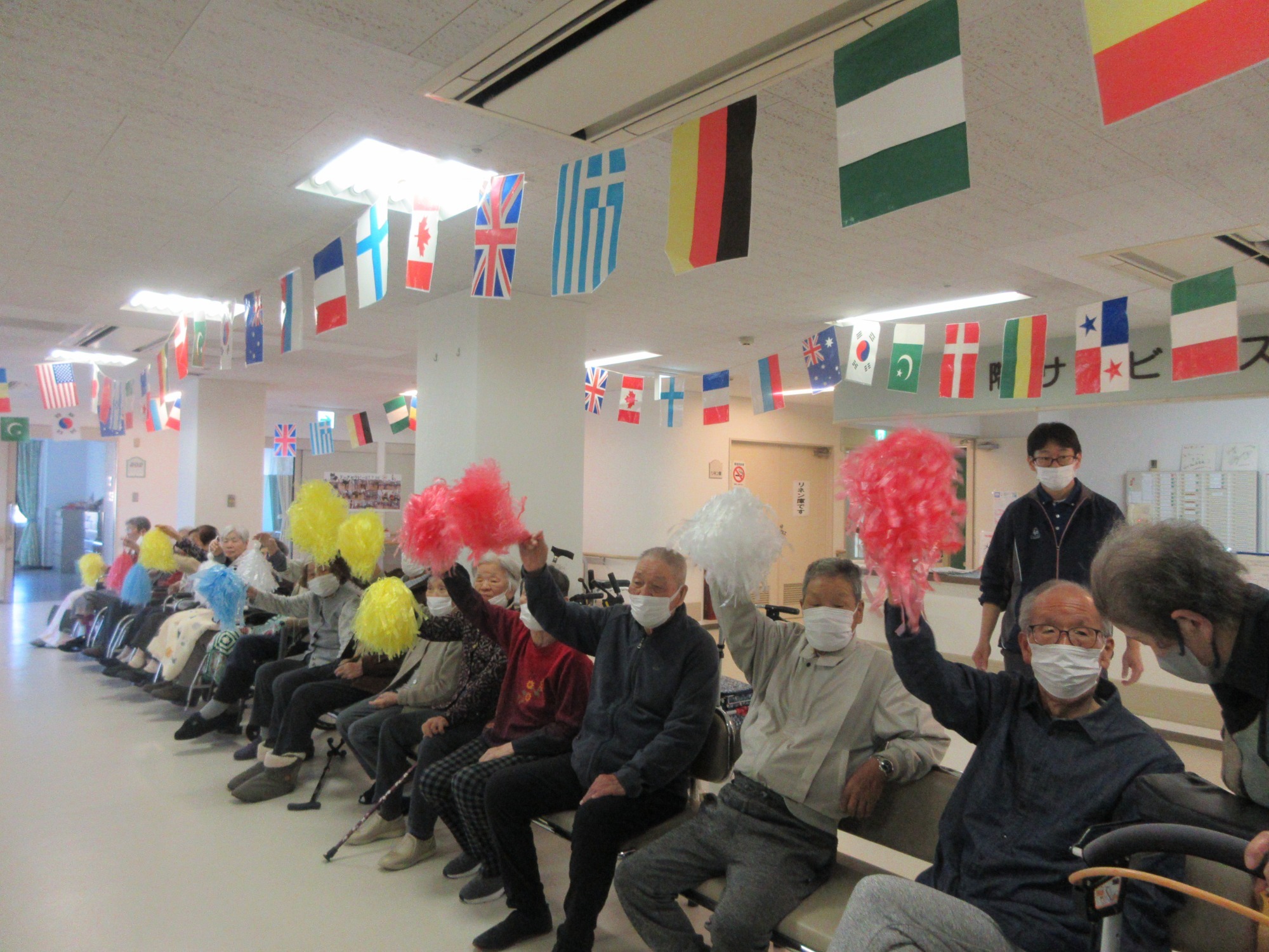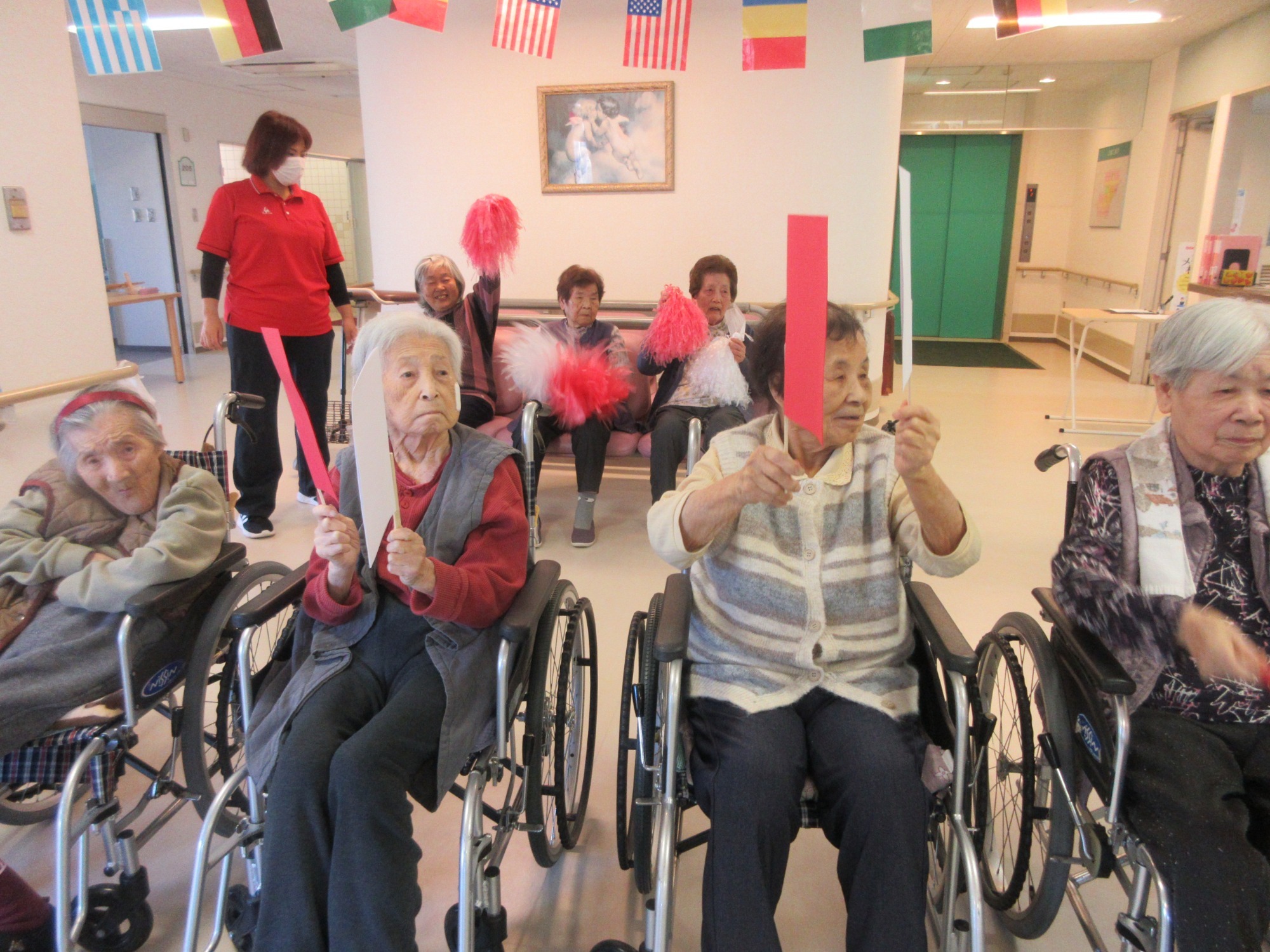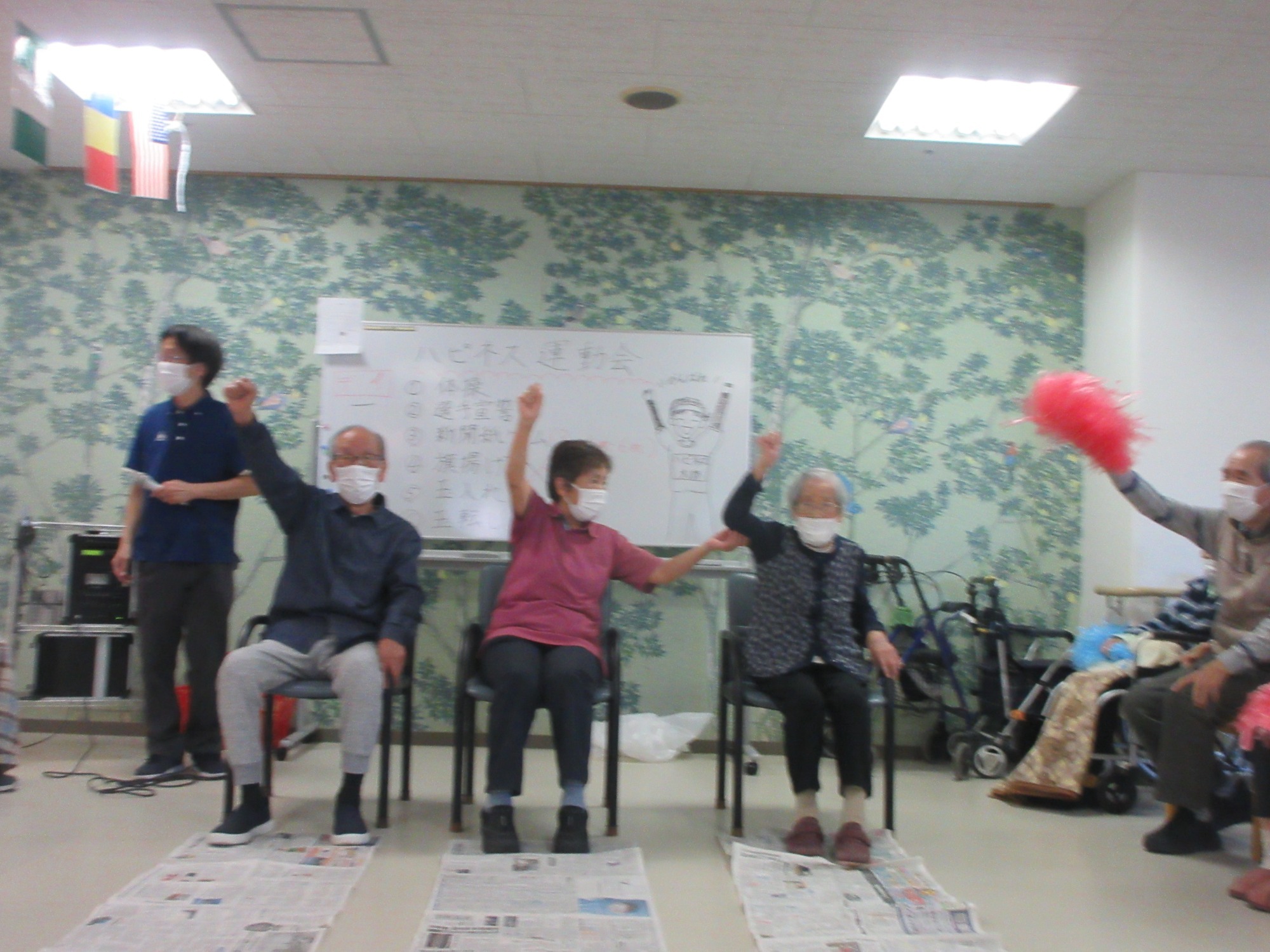 選手代表の方に元気よく選手宣誓をしてもらった後、色々なゲームに参加していただきました。やはり運動会は、皆を元気にしてくれるようで、いつもより笑い声も大きく、楽しんでいただけたようです。「旗揚げ」も練習した成果がでていて、全体の正解率も高くなっていました。沢山体を動かして、頭も使っていただいたので、今日は良い夢が見れると思います。皆さま、お疲れ様でした。