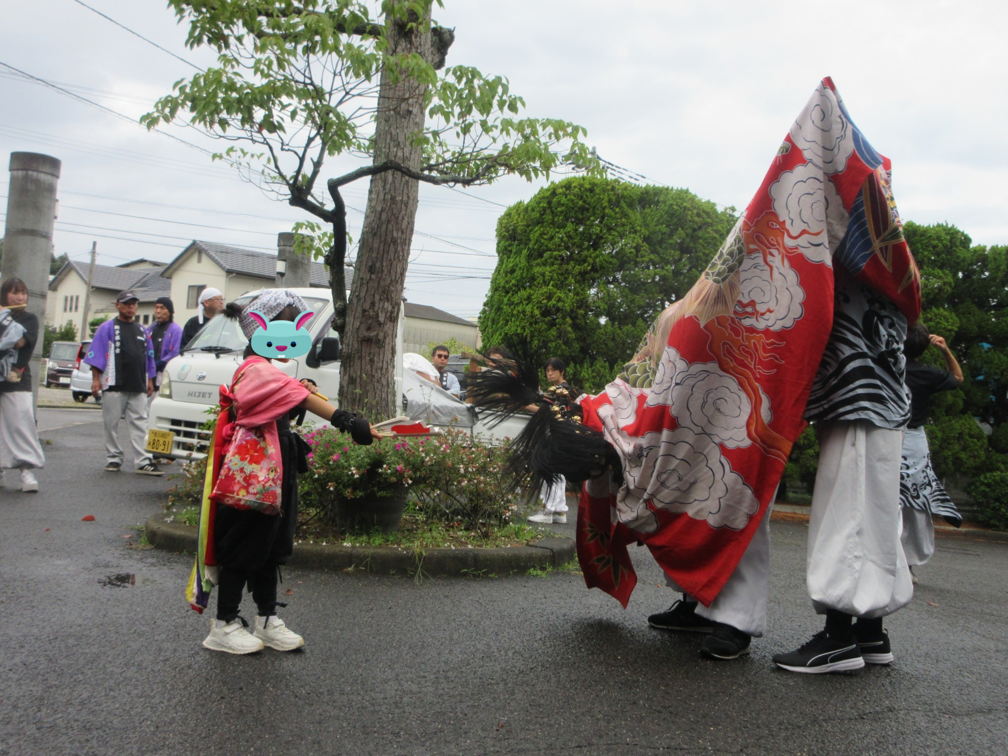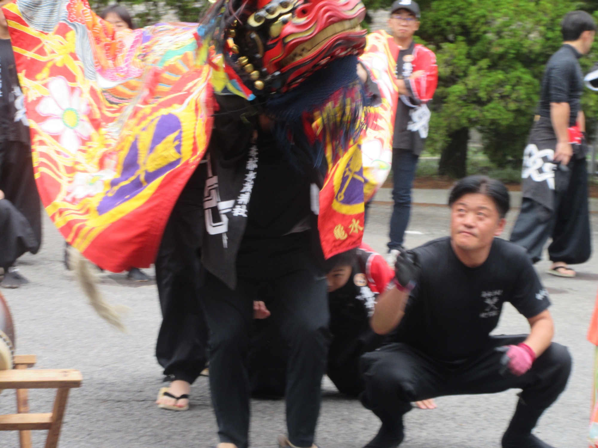 男性二人組で踊る獅子舞も、低い姿勢を保ち激しく踊られるので、何回も踊り手が交代されていて、大変さが見ていてもよく伝わりました。周りの若い方達の掛け声も大きく、皆さんの活気がすごかったです。五色の里や在宅サポートの方達も見物に来て下さり、皆さん喜んでくださいました。地下地区の皆様、どうもありがとうございました。