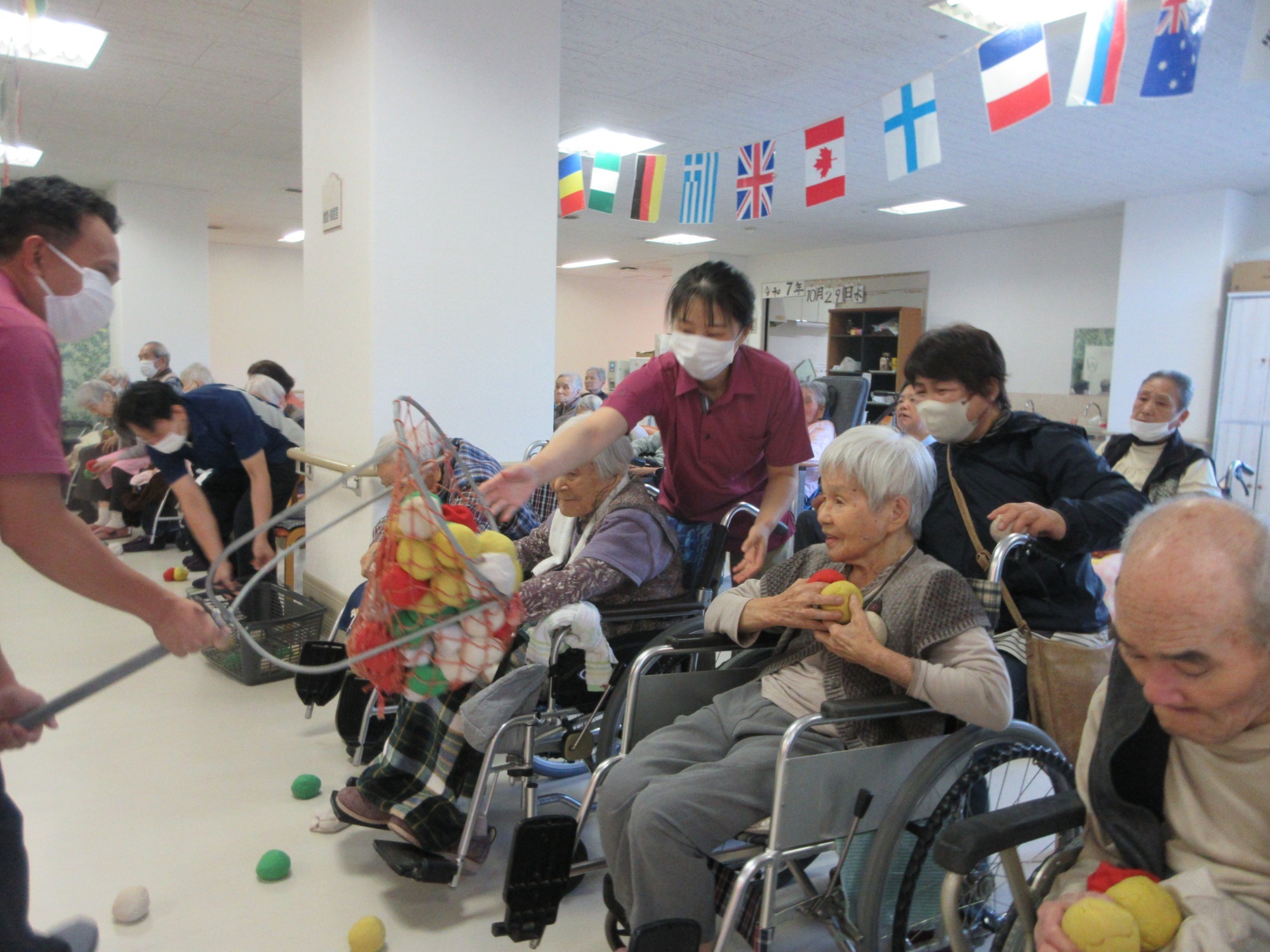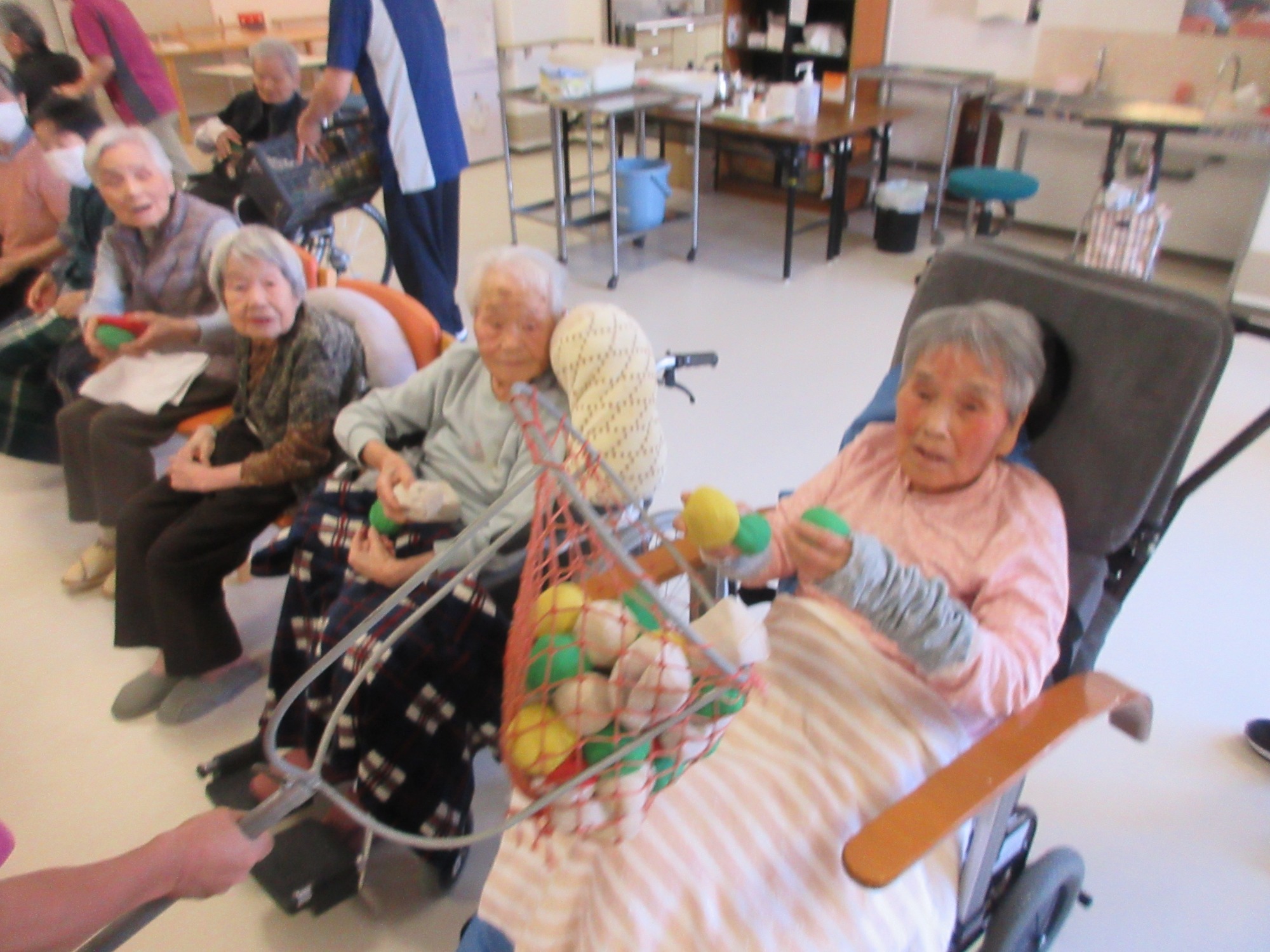 また、職員と一緒に福笑いをしたり、ボール投げ等をして、楽しい時間を過ごしていただきました。