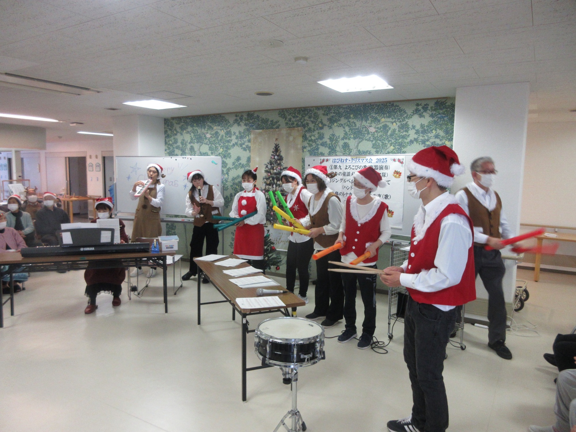 今回のクリスマス会は、「冬の童謡メドレー」のコーラスと「第九」の楽器演奏を従業員がお披露目しました。