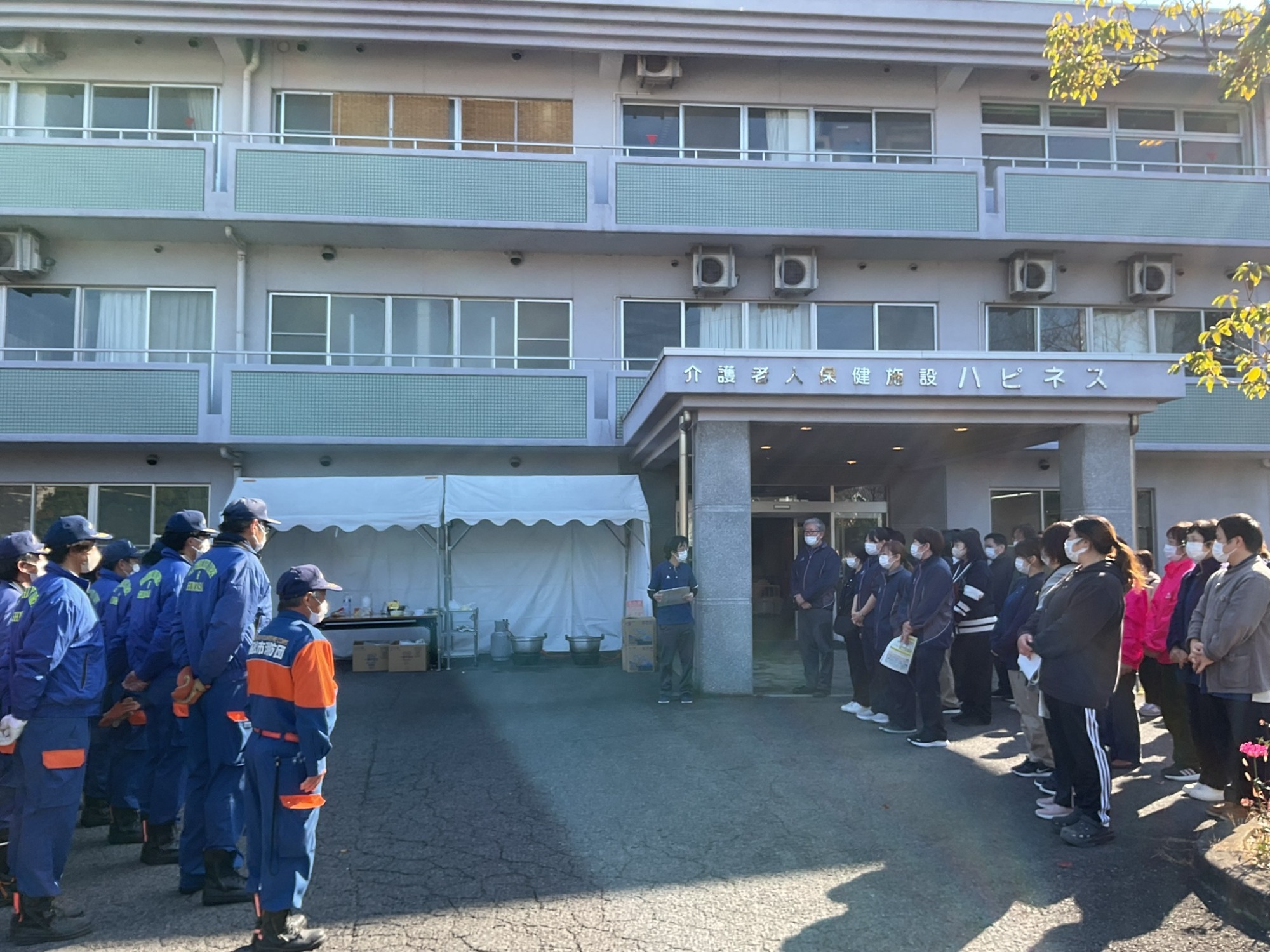 いつ起こるのか分からない災害に備え、医療法人社団伸萌会では職員が集まり、発生時の対応力を高めるために下笠居地区消防団、下笠居地区婦人会の皆様と連携し防災訓練を行いました。