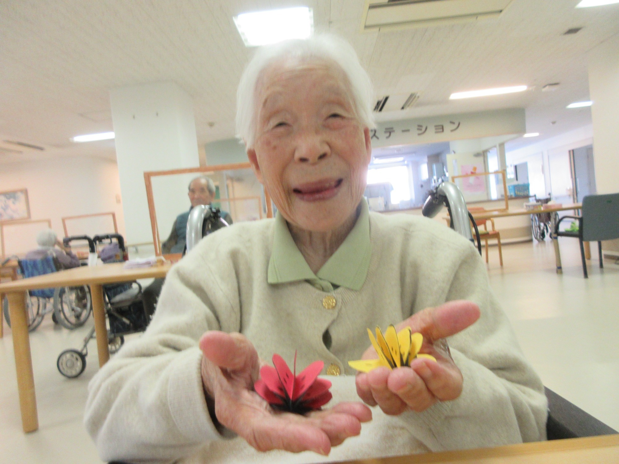 今年の施設の最高齢は105歳の方です。入所者様の100歳を超えられた方が年々増えてこられています。本当におめでたい事で、スタッフ一同喜んでおります。皆様の健康と安全を第一に、職員一同末永くお手伝いさせていただきますので、今後ともどうぞよろしくお願い致します。