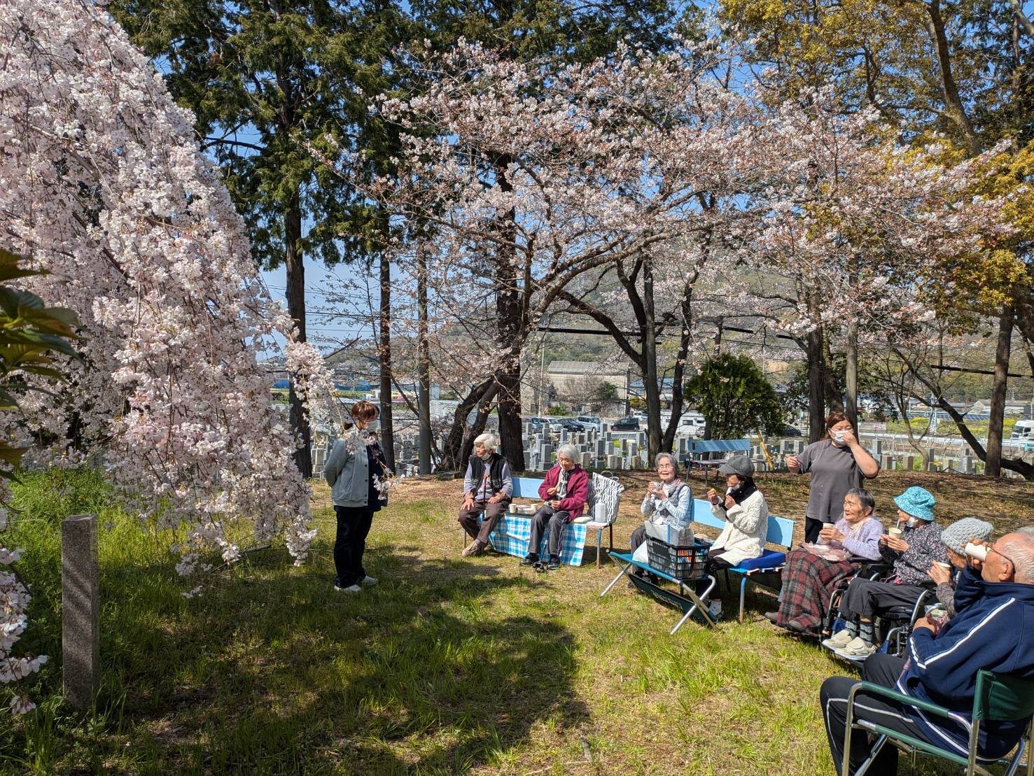 花が大好きなご利用者が多いので、皆さん着くなり、「きれいやなぁ」と季節を満喫されていました。